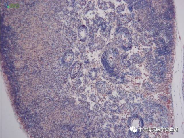 (4)组织变干:修复液溢出后未及时补充液体、染色切片太多、动作太慢、忘记滴液、滴液流失等都是造成组织变干的原因。解决的办法是操作要认真仔细,采用DAKO笔或PAP Pen在组织周围画圈,可以有效的避免液体流失,也能提高操作速度。