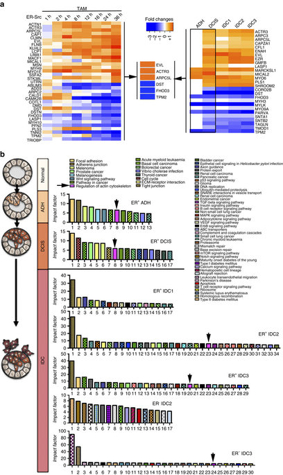 该项工作是解决乳腺癌病程发展难题的组成部分,通过了解肿瘤细胞在前浸润期(pre-invasive)和获得恶性特征前的细胞内变化,可以帮助我们预测哪些肿瘤更容易发生转移,从而为其量身定制治疗更好的治疗方案