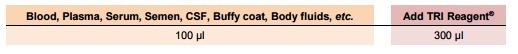 针对细胞重悬液,添加 3 倍体积的 TRIZOL 到 1 体积的细胞悬液中。